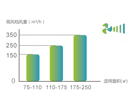 機組設有低、中、高、超強四檔,滿足不同住宅面積和不同接管尺寸下新風需求。 |